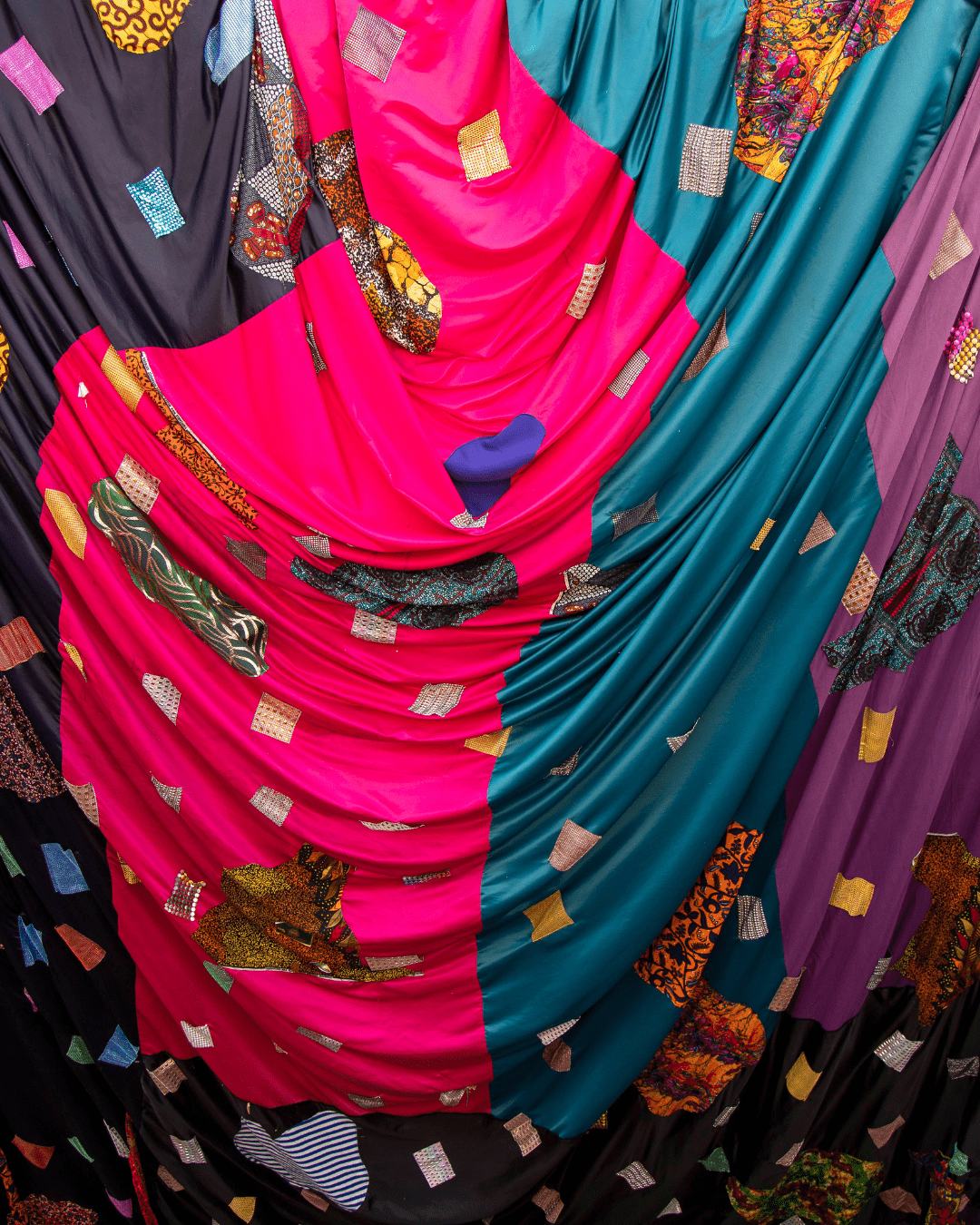 Emmanuel Aggrey Tieku, Shredde Connections In The Alley II, 2025, 110 x 12 m. Courtesy of the artist and ellipse art prize.